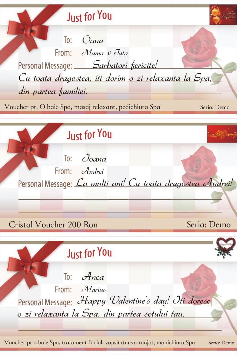 Voucherul poate fi personalizat tratamente specifice sau cu suma dorită.